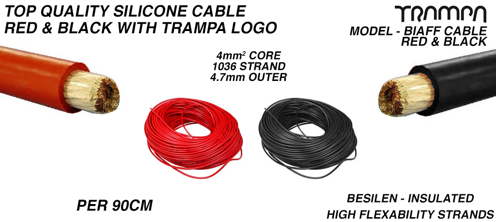 TRAMPA's gorgeous Silicon cables are made by the same GERMAN company who makes the world Famous BLAFF Cables. The Blaff cables have enclosed in the Besilen insulated Silicon Outer sleeve, 1800 Highly flexible TOP QUALITY Copper strands in the center... BLAFF cable is used for the highest demanding jobs where performance is critical. BLAFF's Cables are so good they are used for public Transportation (Trains, Trams, Planes) as they have a global reputation of incredible high standards.